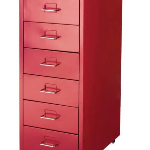 IKEA lådförvaring i vit färg med flera lådor för förvaring. Möbeln är tillverkad i trä och passar för organisering av mindre föremål i hemmet eller kontoret.