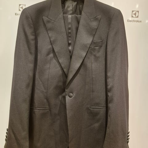 Smoking av märket Turo Tailor, kavaj och byxa. 55 Polyester och 45 Ull