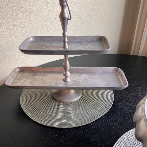 Vackert 2-delar Kakfat , silverfärgade i metall, nästan ny.