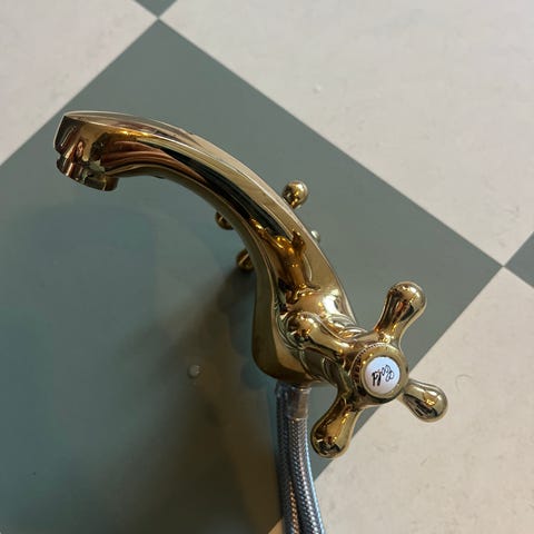 Säljer en stilren badrumsblandare i gott skick. Märket är okänt men gissningsvis Gustavsberg. Höjd ca 28 cm, passar bra till handfat i badrum eller gäst-WC. Fungerar som den ska och är väl omhändertagen.