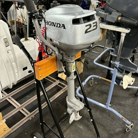 Inköpt ny 2017 på SeaSea till 3m gummibåt. Använd 3år som lekbåt av barn, därefter förvarad i garage.