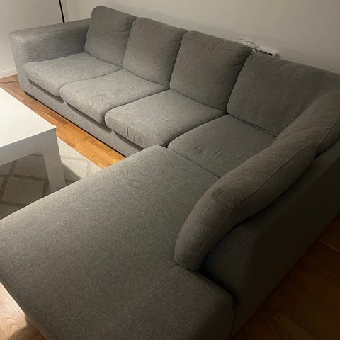 Soffa från IKEA och soffbord från Jysk säljes. Stått som extra i barnens butik tv-rum