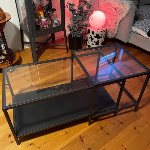 Matchande bord i metall med glasskiva. Lätt att placera.