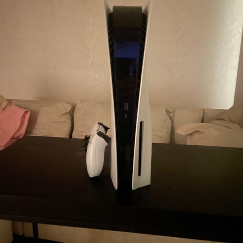 Sony PlayStation 5 spelkonsol i vit färg. Inkluderar originaltillbehör och handkontroll. Några månader gammalt men fullt fungerande.