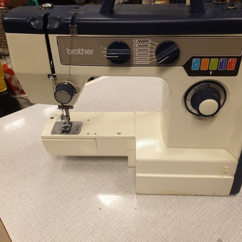 Brother Modell VX 850 S symaskin med flera sömmönster. Maskinen är mekanisk med vridreglage för val av sömmar och inställningar. Levereras med tillbehörslåda, fotpedal och instruktionsbok. Passar för olika typer av sömnadsprojekt.ny servad fungerar klockrent med alla tillbehör