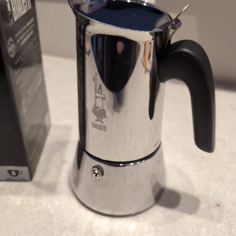 Bialetti Moka Express kaffebryggare i svart aluminium med klassisk åttakantig design. Rostfri kaffebryggare med svart handtag och lock, utrustad med filter för bryggning av kaffe. Båda kaffebryggarna är avsedda för användning på spis och har handtag för enkel hantering.
