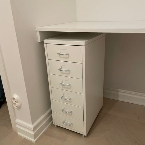 Praktisk lådhurts från IKEA i serien Micke. Försedd med hjul som gör den lätt att flytta vid behov. I använt, men fint skick!