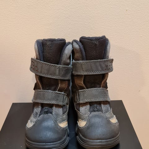 ECCO barnskor i storlek 39, designade för pojkar. Skorna är svarta och har en hög modell med snörning. Insidan är fodrad med ett mjukt material för extra komfort. Endast använda en säsong, pojken växte ur dem snabbt och kan därav inte använda dem längre, så det är anledningen till att de säljs :)