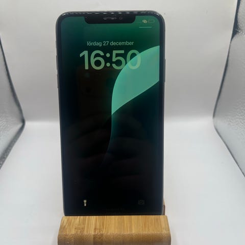 Apple iPhone XS MAX med 64 GB lagringskapacitet. Telefonen är ROSA och har en skärm med några synliga sprickor. En transparent skyddande mobilskal medföljer. Batteriets maximala kapacitet är 88 procent.
