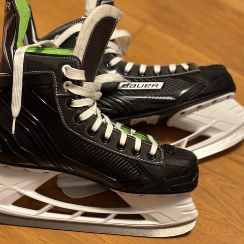 Bauer ishockeyskridskor i storlek 43. Skorna är avsedda för ishockey och har en svart och vit färg. Passar för användning inom ishockeysporten.