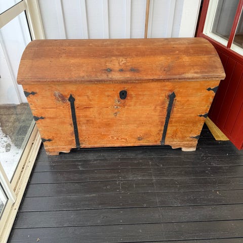 Vitmålad handgjord brudkista.