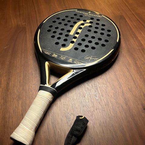 Handgjort padelracket i skandinavisk design med rund form och låg balans för ökad kontroll.