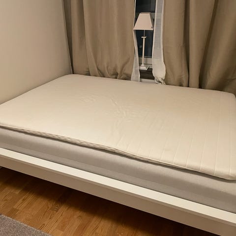 Malm säng i EK med sängbord. madrass 140x200cm. sängstomme 160x200cm.