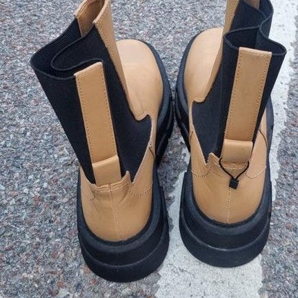 Unika Mandala kängor i rött och orange med geometriskt mönster och svarta detaljer. Skorna har svart snörning, grov platt sula och rund tå. Perfekta för dig som vill sticka ut med din stil och gillar färg och mönster.