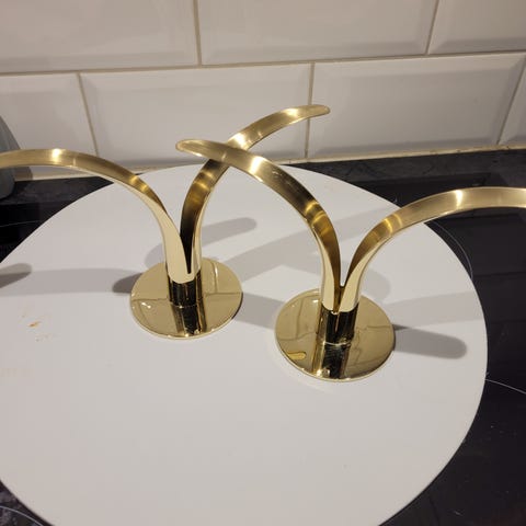 2 st ljusstakar av Ivar Åhlenius för Skultuna, endast använt till dukning med batteriljus, I nyskick