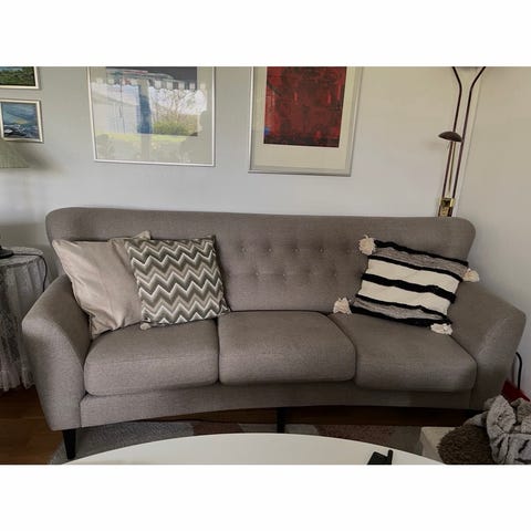 Soffan är nedmonterad vid avhämtning. Monteringsanvisningar och verktyg medföljer.
