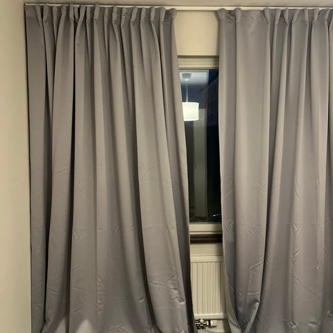 Säljer två stycken mörkläggande gardiner i storlek 145 × 300 cm.