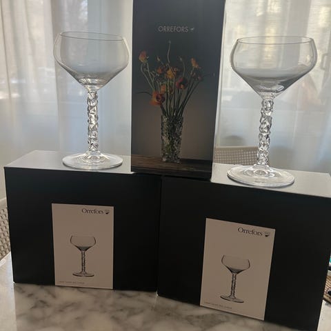 Säljer glas ur Orrefors Nobel-serien, en klassisk och eftertraktad svensk design.