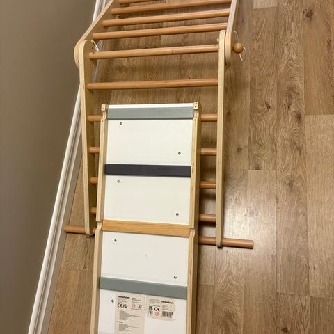 Taggar: klättervägg, klätterställning, Montessori, klätterleksak, inomhuslek, barnrum, balans, motorik, rutschkana, aktivitetsleksak