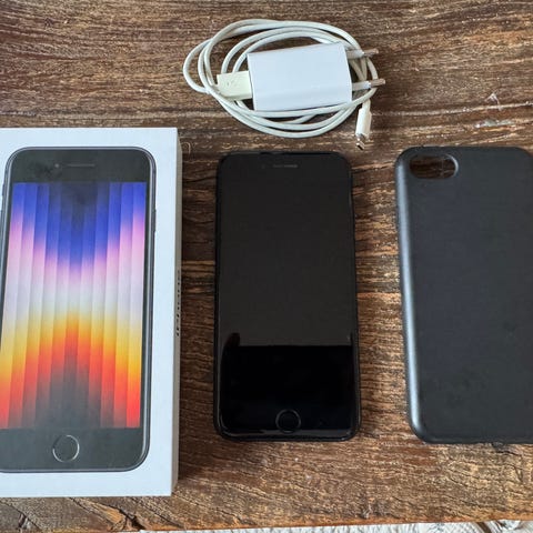 Apple iPhone SE (2-3 gen) mobiltelefon med 128 GB lagringskapacitet. Enheten har en kompakt design och är lämpad för användare som söker en mindre smartphone med tillräckligt med utrymme för appar, bilder och filer.