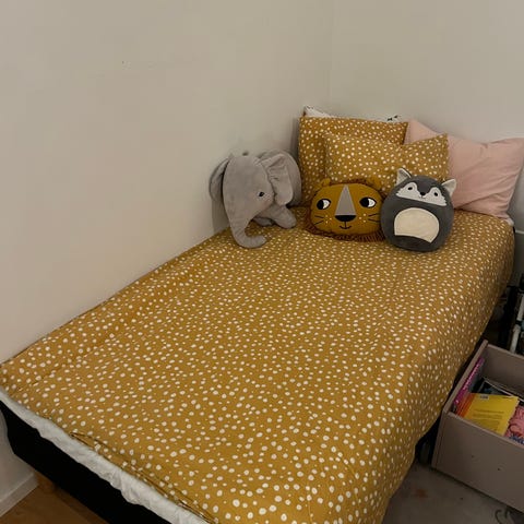 Sängresårbotten, bäddmadrass och sängben säljes pga att vi försöker muta ut sonen ur vår säng med en våningssäng i hans rum. Sängen står i ett barnrum men har aldrig blivit soven i. Dvs inga kiss eller kräksolyckor och sängen är som ny. Endast sutten i lite då och då.