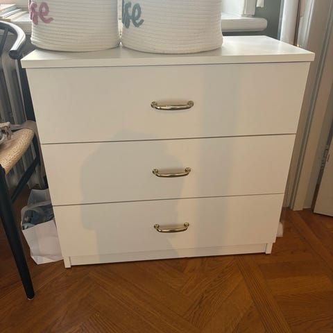 En av lådorna i en av byråerna är lite trasig inuti, och lossnar ibland. Vi limmar och så har det hållit ett tag till.
