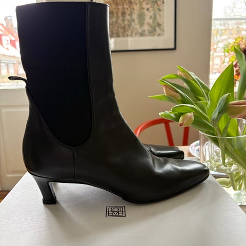 Tidlösa Acne Studios stövlar i storlek 40, tillverkade i svart läder. Skorna har en rundad tå och en blockklack.