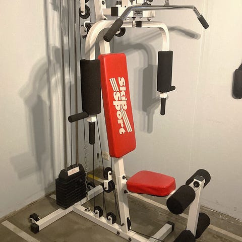 Säljer ett stabilt och mångsidigt Multigym 8000 med flera träningsstationer och boxningssäck. Perfekt för helkroppsträning hemma.