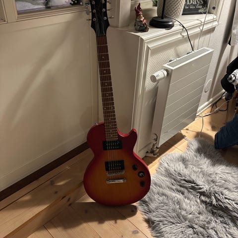 En nästan ny gitarr som fick huvudet brutet under transport med posten.