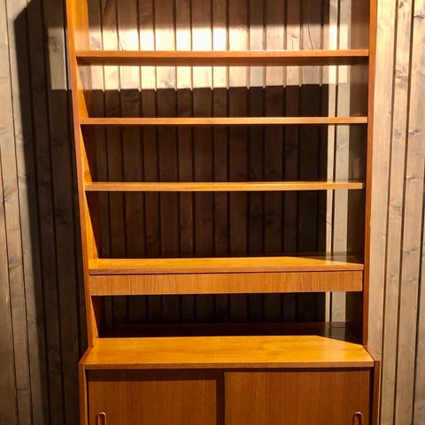 Bokhylla i teak med belysning. I fint skick men med enstaka repor, se bild.