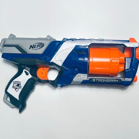 Blaster från Nerf med en snygg design. Den har häftiga detaljer. Perfekt för många timmars skoj.