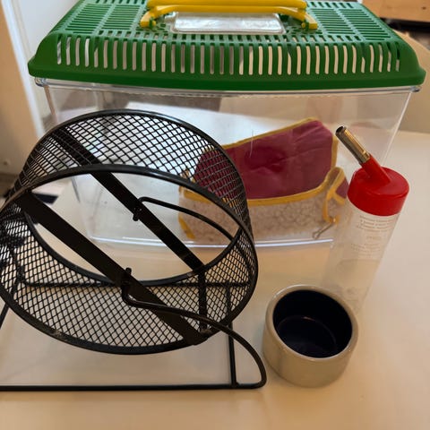 Hamster hus leksaker och mat vatten skålar
