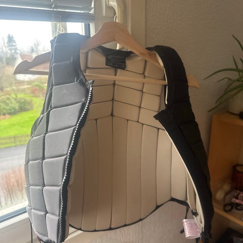 Racesafe RS2010 skyddsväst i svart färg. Storlek adult X-S. Sparsamt använd då jag tidigt bytte till uppblåsbar väst. Är i fint skick, små fläckar inuti (syns nästan inte), men helt ren utanpå! Kan skickas.