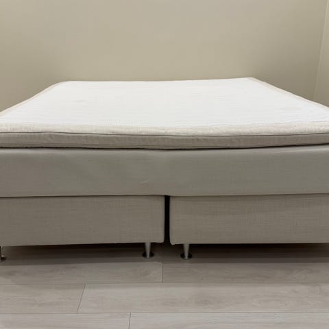 Vi säljer vår kontinentalsäng Langham från Chilli. Sängen har några år på nacken, vilket märks främst på fjädringen, men den har fortfarande bra komfort och liv kvar. En stabil och skön säng med gavel i varsamt använt skick.