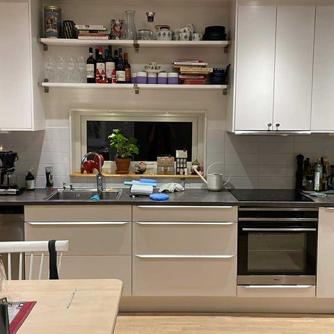 3 st 60 cm utdragslådor samt 1 sektion med 80 cm bred och högskåp med lådor och överskåp för micro och ugn.