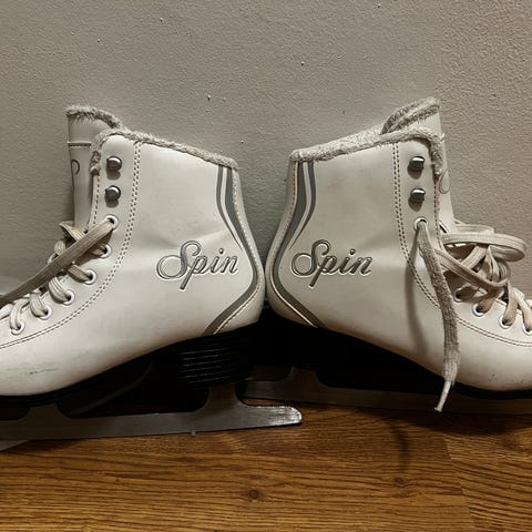 Säljer ett par vita konståkningsskridskor av märket Spin i storlek 34.