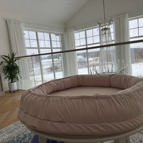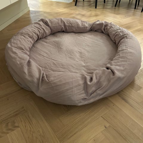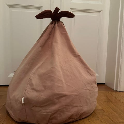 NG baby barninteriör sittsäck i grått tyg. Passar för barn och kan användas som en bekväm sittplats eller avkopplingsyta.