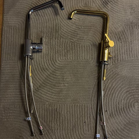 Kökblandare i krom med anslutningsslang. Passar för installation i kök. Enkel design med en spak för temperatur- och flödeskontroll.