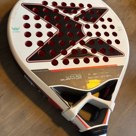 Racket är i mycket gott skick och använt ytterst få tillfällen. Helt nytt ramskydd samt ny handledsrem orginal från nox.