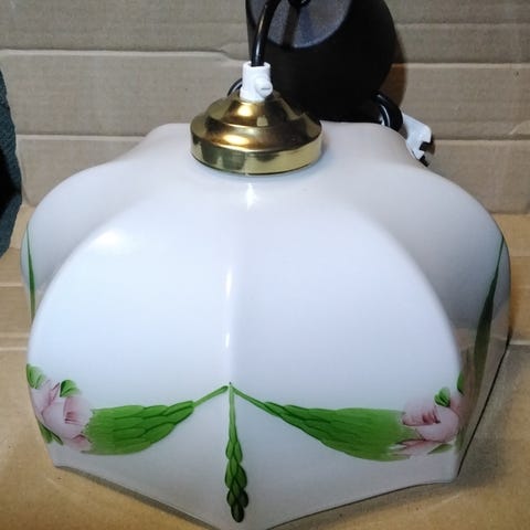 Rejält tunga lampor med sockel i gjutjärn. Den ena har skyddsplåt i botten men den andra saknar denna. Diameter överst på sockeln ca 36.5cm. Höjd med kupa ca 30cm. Skickas ej!