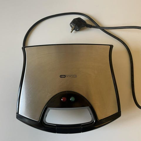 Obestämd Toaster och Smörgåsgrill med utbytbara plattor för olika typer av smörgåsar och bröd. Inkluderar plattor för grillning av smörgåsar och för rostat bröd. Elektrisk apparat med sladdanslutning, lämplig för köksbruk.