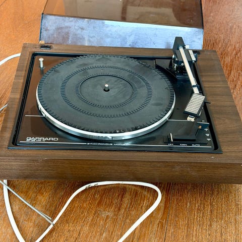 Utrustad med tonarm och pickup för uppspelning av vinylskivor.