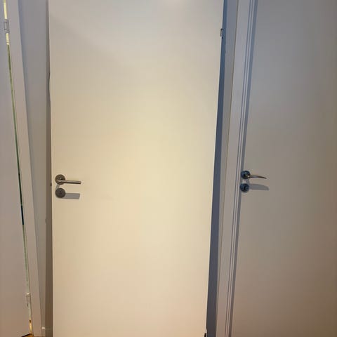 Observera att dörren tidigare kapats på höjden till 201 cm (från 204 standard) pga tidigare karm där den suttit. Inget problem om du har samma höjd eller vill kapa till dörren ytterligare beroende på passform som behövs. Mindre märke nedtill på dörrbladet finns enligt bild.