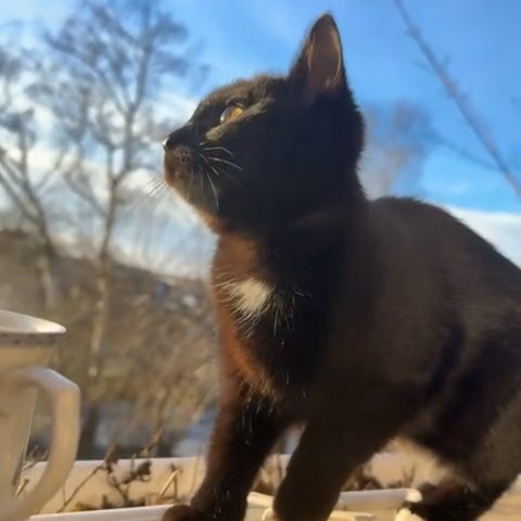 Ung, lekfull och nyfiken hankatt, under 1 år gammal. Väldigt social och människokär, gillar att vara med och utforska sin omgivning. Smart, alert och lätt att knyta an till.
