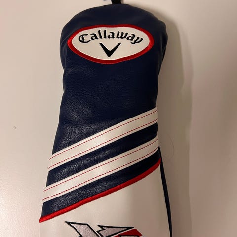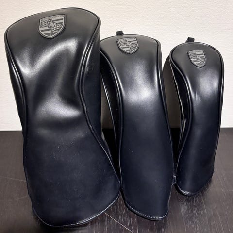 Golfklubbsöverdrag i svart läder med färgglada motiv