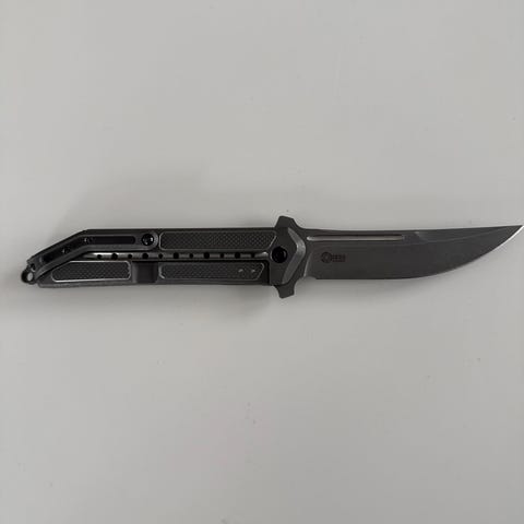 Rostfritt stål. Hölje följer med. Längd från skaftet till spets är 60cm. Handtagen är nylonlindade för ett stadigare grepp.