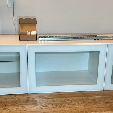 Ikea Bestå Vassebo. Praktiskt vitrinskåp från IKEA. Funktionellt med lådor under vitrinskåpet som har plats för glas och porslin.