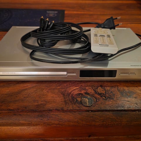 DVD-spelare med fjärrkontroll och kablar