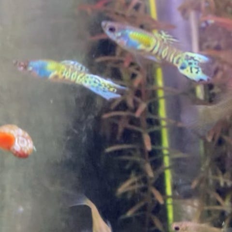 En grupp med mixade honor tror det är 8 stycken med ca 10-20 yngel söker nytt hem tillsammans. Honor är från blå mix, orange magenta och galaxy. Honorna är nästan alla utan färg, och två med lite gult. Ynglena är okönade. Och kan få roliga färger på deras söner.