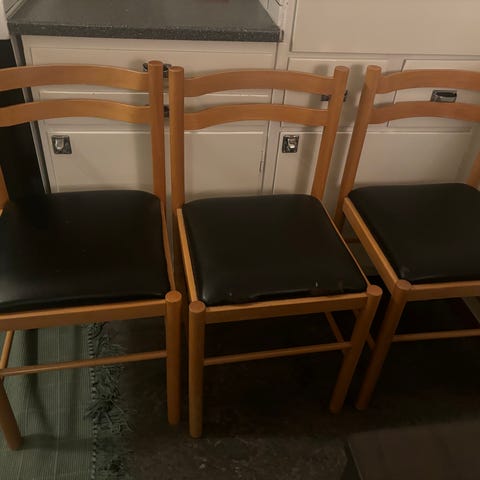 Säljer 4st köksstolar från Sarek köpt på Mio, skön läder. Pris: 100 kr /st eller 300 kr för alla fyra. Finns att hämtas i Stockholm.